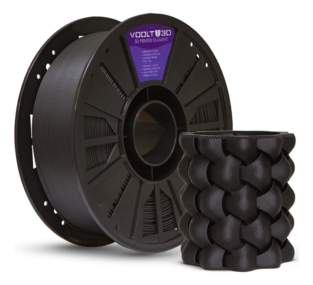 Filamento PLA Velvet Preto 1kg Voolt3D com acabamento aveludado, alta precisão e compatibilidade com impressoras FDM e alta velocidade. Ideal para peças elegantes e resistentes....
